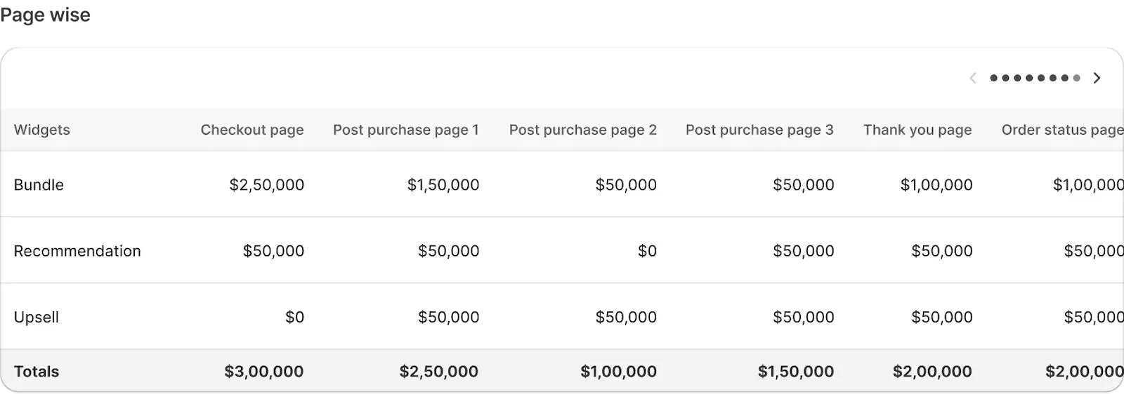 Page-wise analytics help you see exactly which pages and widgets are driving revenue.
