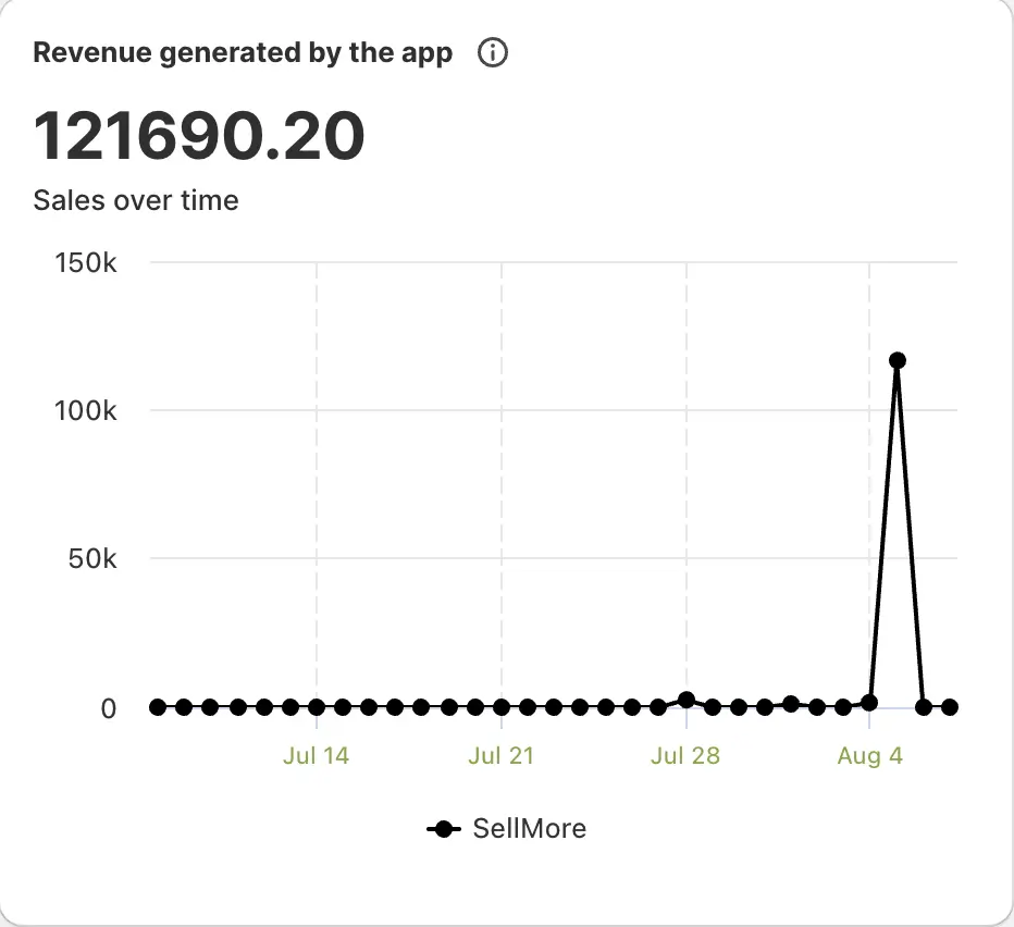 This section shows the total revenue generated through the app over time. Use this graph to monitor sales trends and evaluate whether your offers are boosting your revenue.