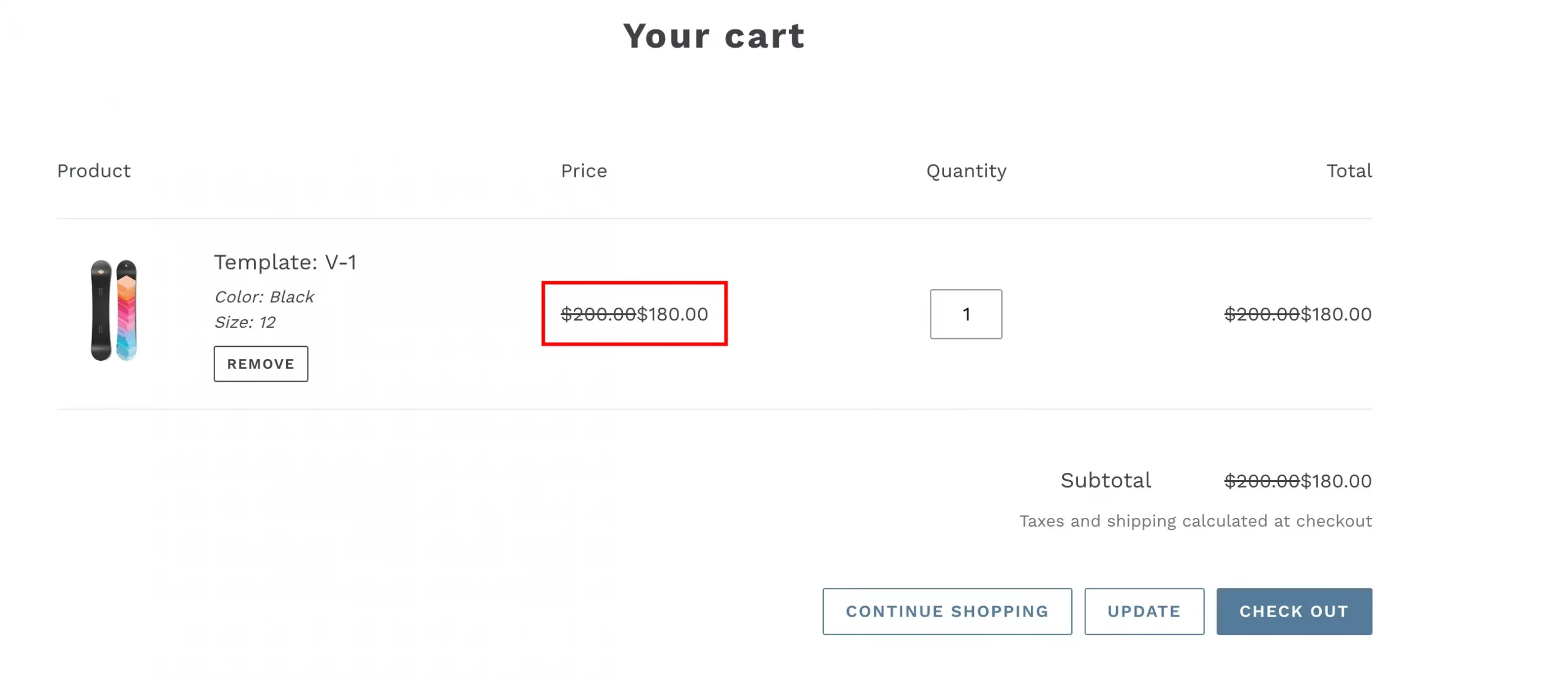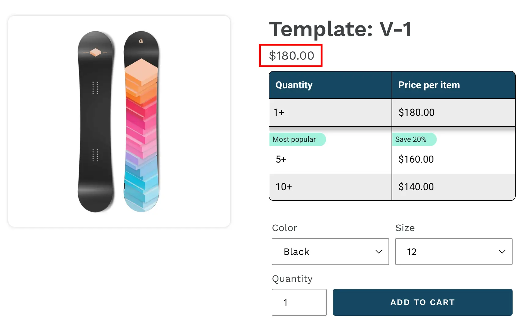 -> If the offer price is not showing on the product detail page, you can add the selector for the product price element used by your theme. This ensures that customers see the correct discounted pricing directly on the product page.