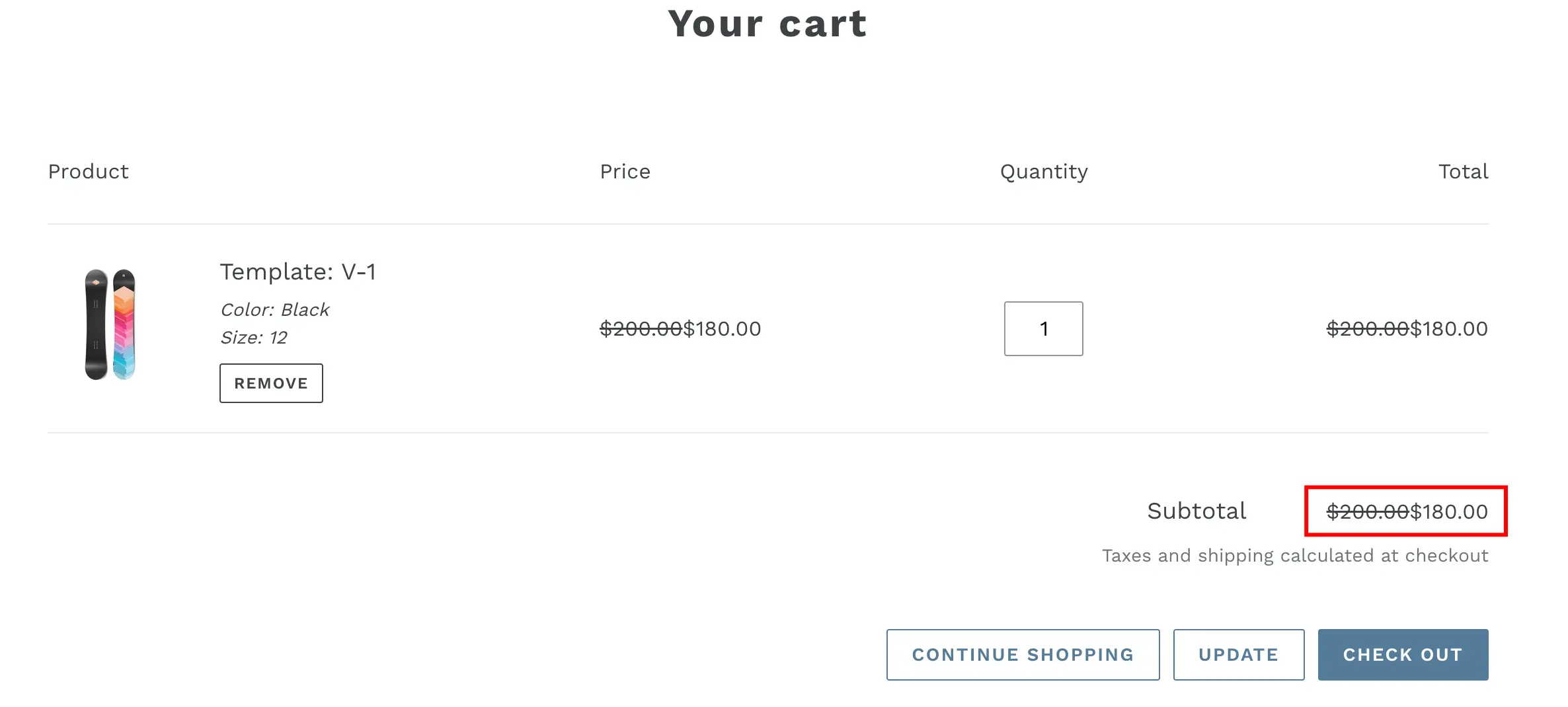 -> In some themes, customers can apply coupon codes in the cart. If Shopify’s native discounts are applied along with the app’s discounts, they may overlap or merge incorrectly at checkout. To prevent this, you can add the selector for the Shopify discount tag in this option.