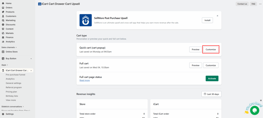 - Search for “iCart Cart Drawer Cart Upsell” and install the app.
