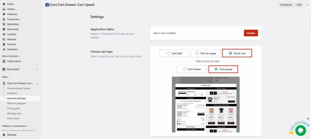 - iCart not only offer cart popup, but it also provides a cart drawer, popup & full cart. So, as per your requirement, choose the cart type that you want to display in your storefront.
