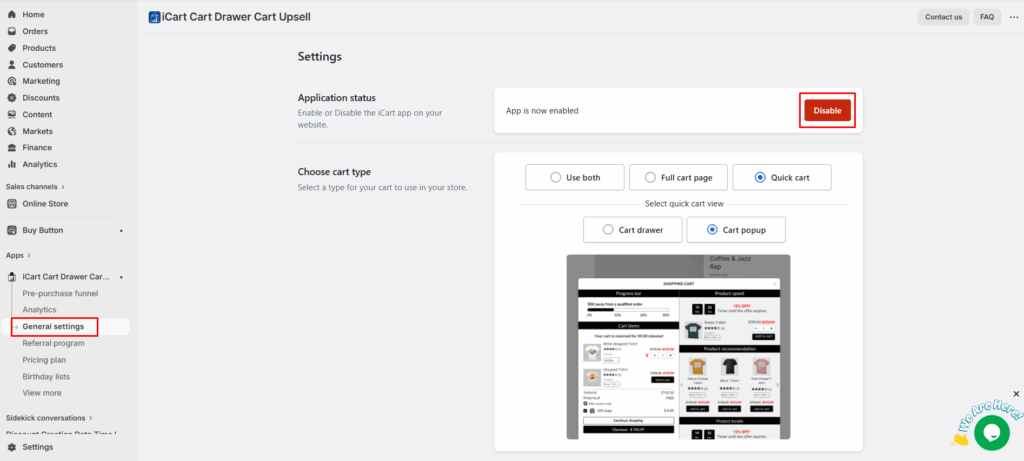 - Once installed, go to app’s general settings and enable the app in your store.