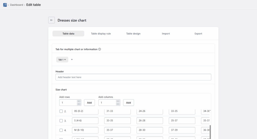 - After adding all the details, click on the Save button and that’s it, your size chart will be live on your storefront.
