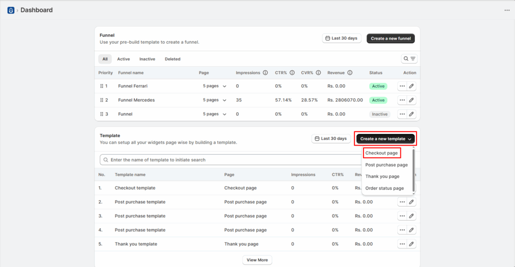 Step 4: After creating template, click on create a new funnel.