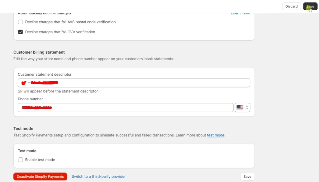 - If you use Shopify Payments: Settings > Payments > Shopify Payments > Manage. Scroll down and uncheck the Enable test mode box.