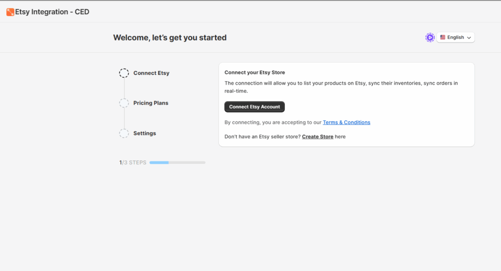 - Open the Etsy integration app from your Shopify dashboard