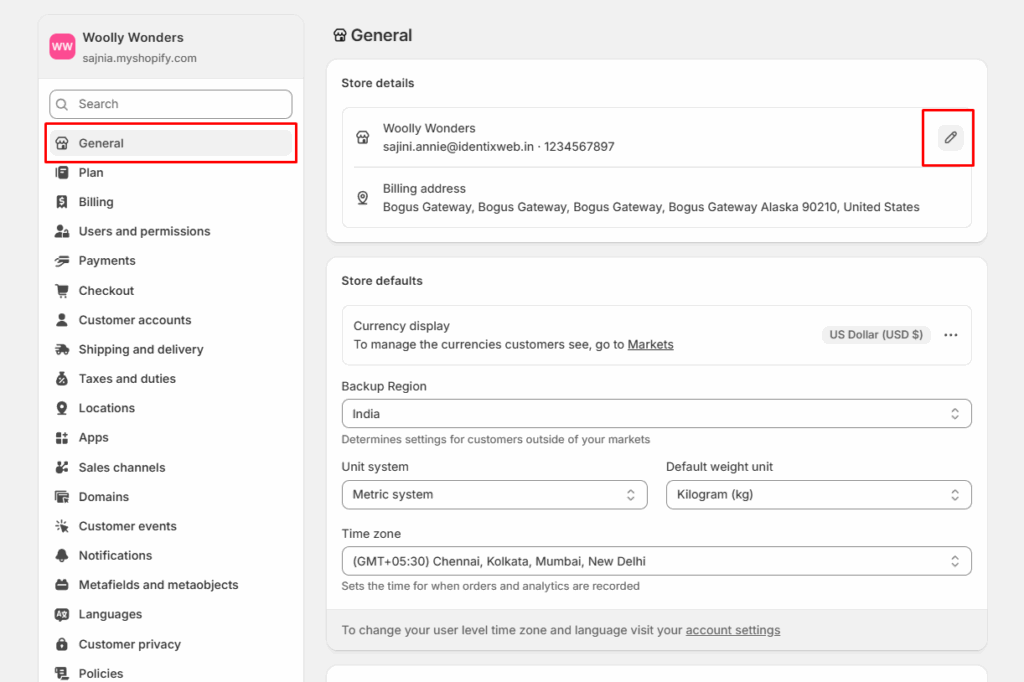 - Shopify Payments (credit/debit cards, local methods)