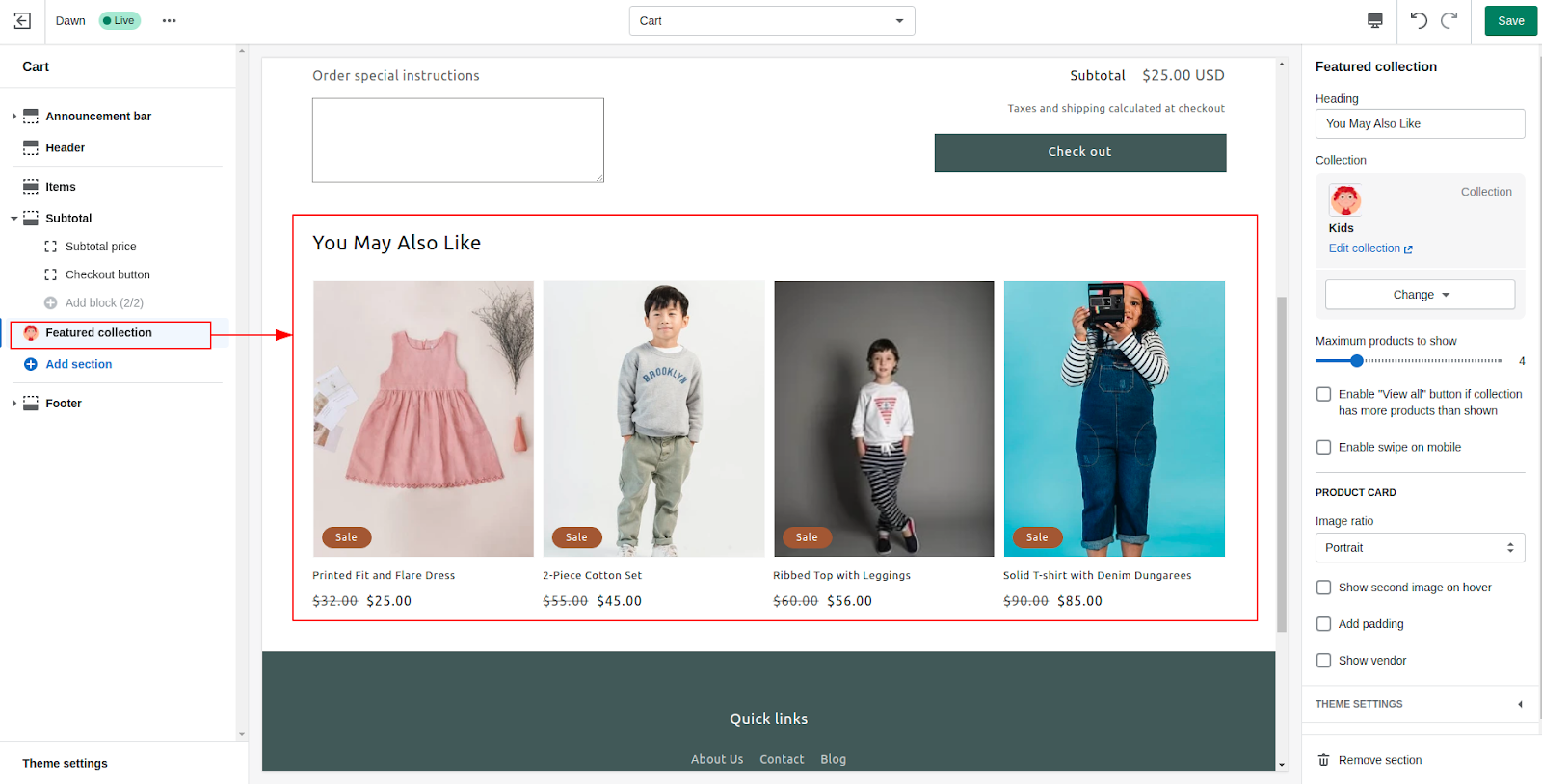 Let’s explore all the theme sections available in the Shopify Dawn theme.