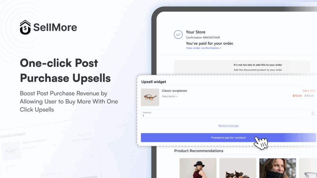 When a buyer sees something that genuinely improves their original purchase, the decision feels natural rather than forced. Shopify apps like SellMore Post Purchase Upsell enable merchants to create targeted one-click upsell offers across checkout, post purchase, and thank you pages; helping ensure the upsell shown is directly tied to the customer’s actual order rather than a generic product recommendation.