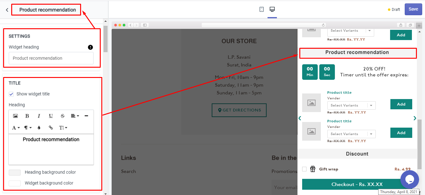 Percentage: This will apply the discount in percentage to the product added from the Product Recommendation widget